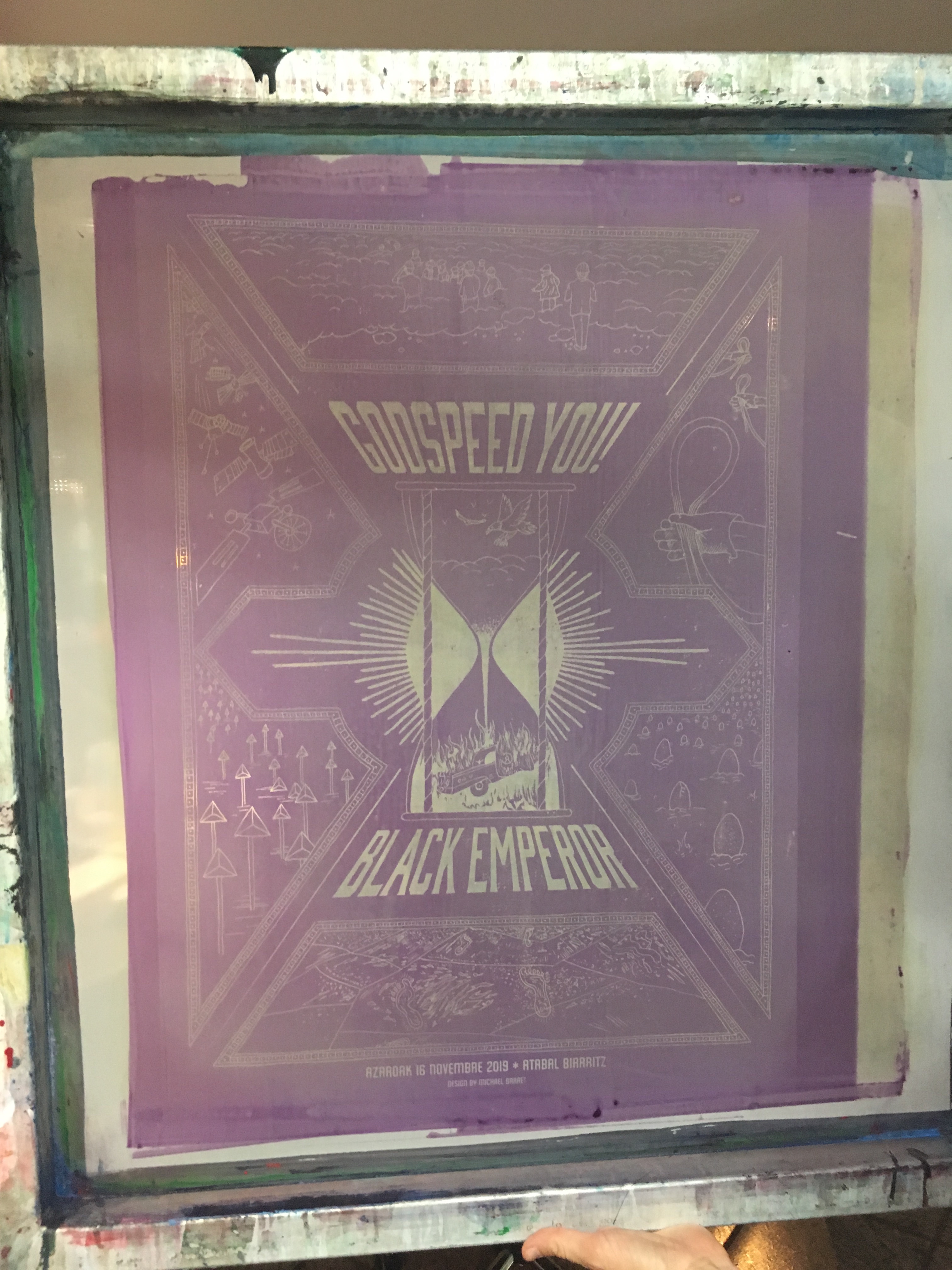 Affiche réalisée pour le concert de Godspeed You! Black Emperor le 16 novembre 2019 à l’Atabal Biarritz.